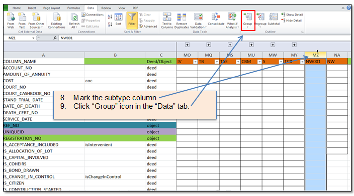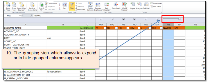 Figure 93 Grouped columns
