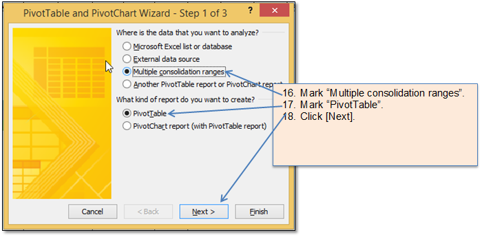 Figure 107 Pivot table parameters (step-1)
