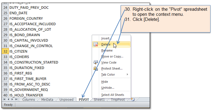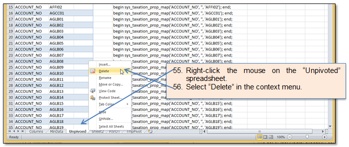 Figure 113 Delete PIVOT sheet