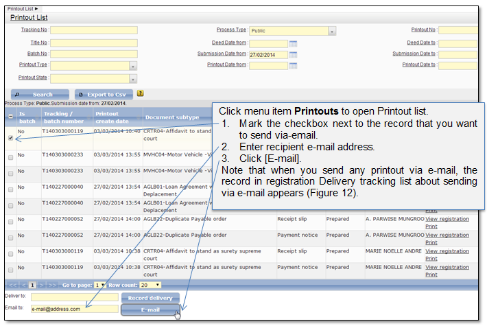 Each printout can be sent to the applicant via e-mail from Printout list (Figure 13).
