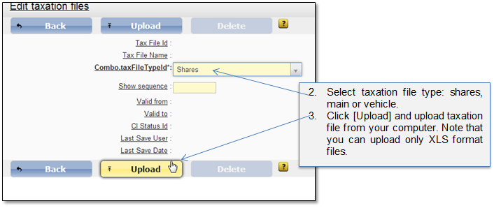 Figure 70 Upload new taxation file