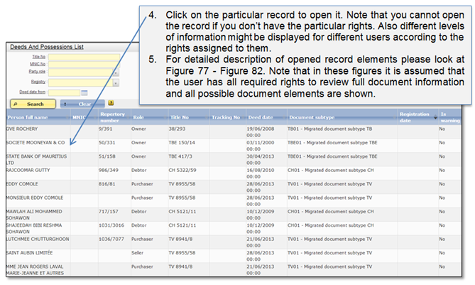 Figure 84 Deeds and possessions list with records