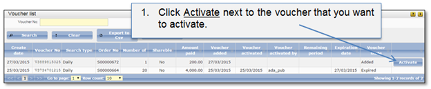 Figure 65 Activate voucher at voucher list