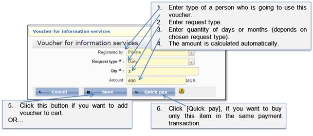 After the button [Buy voucher] is clicked, the following information has to be entered:
