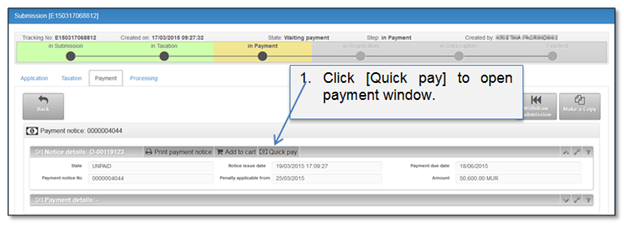 Figure 42 Quick pay from payment tab