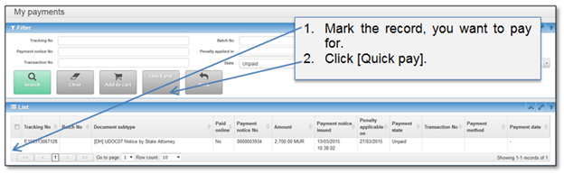 Figure 43 Quick pay from “My payments”