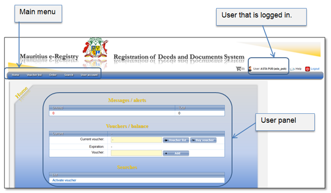 •User panel – in the middle of the page a summary of unread messages, voucher balance and links to the searches are presented.