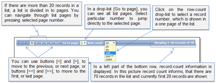 2. In a bottom row of the list (Figure 1), navigation buttons and list information is presented.